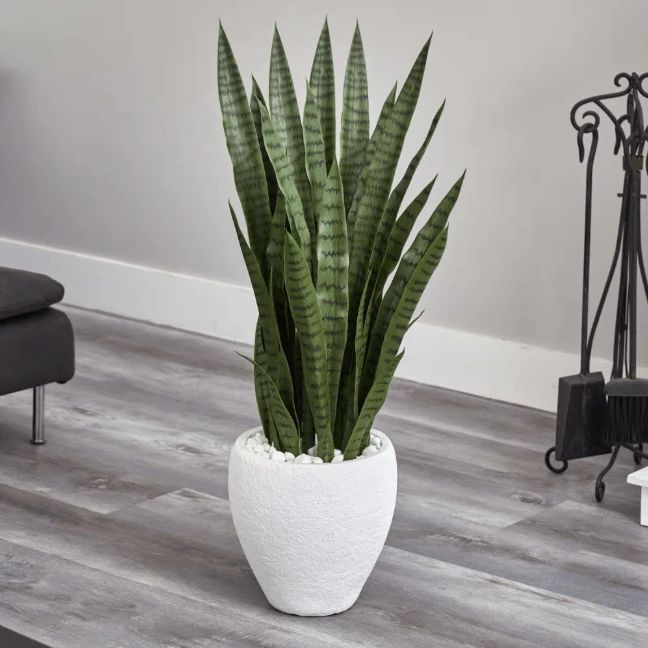 - Realistic Design: Textured, variegated leaves mimic live Sansevieria foliage