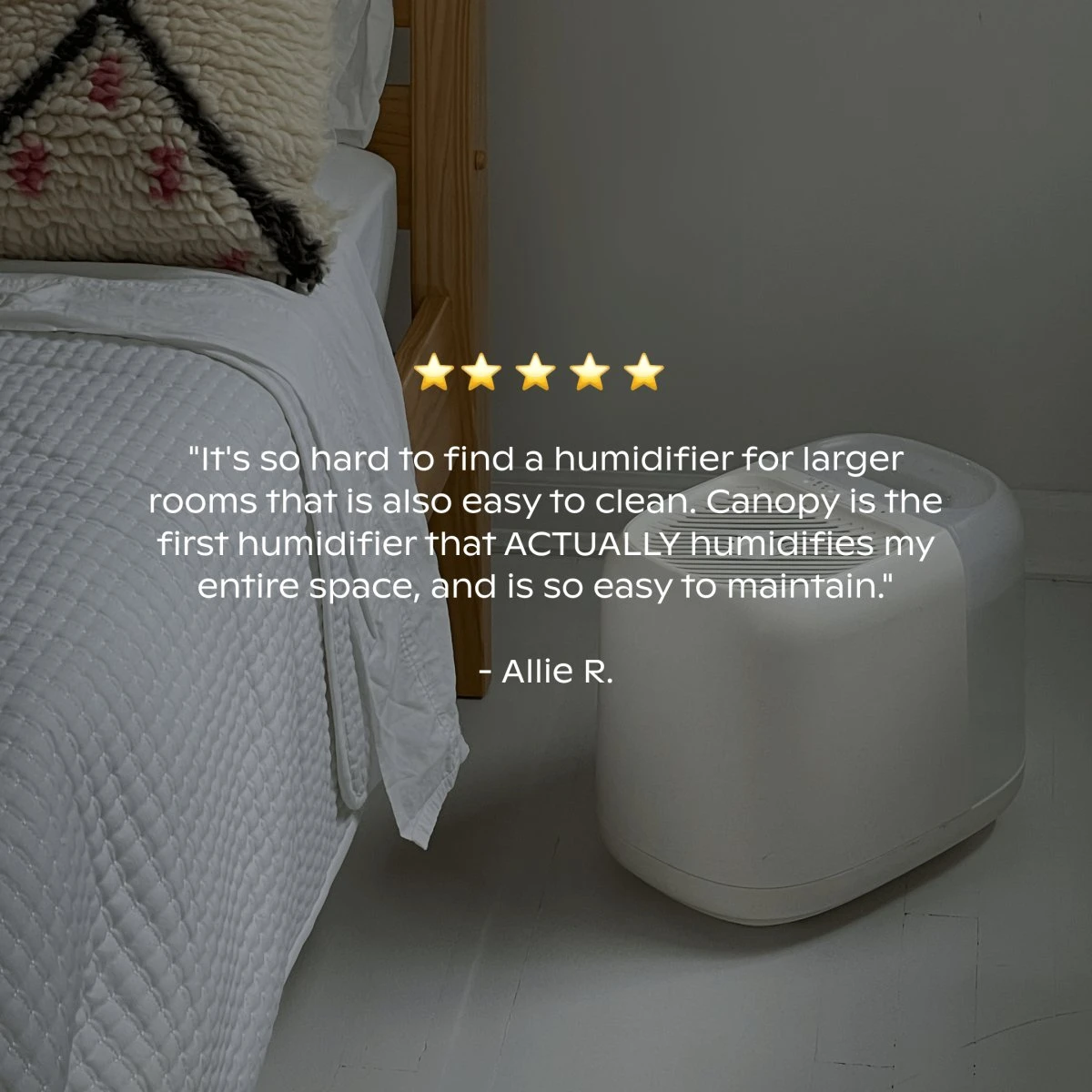Unlike conventional humidifiers, the Canopy features mold-inhibiting materials and a UV light sanitization system that continuously purifies the water before it’s released into the air. Every component is dishwasher-safe for easy maintenance, making it one of the most hygienic and low-effort humidifiers available. Ideal for plant lovers, skincare enthusiasts, and anyone seeking a healthier atmosphere year-round.
