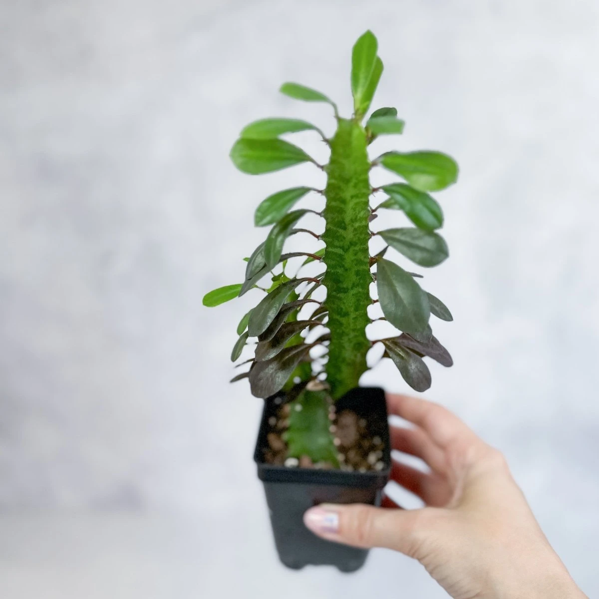 Did you know that the Euphorbia trigonia ‘Rubra’ can grow up to three feet tall? This succulent not only serves as an eye-catching centerpiece but also thrives in bright, indirect sunlight. Despite its striking appearance, it’s important to handle this plant with care, as it produces a milky latex sap that can irritate the skin and eyes.