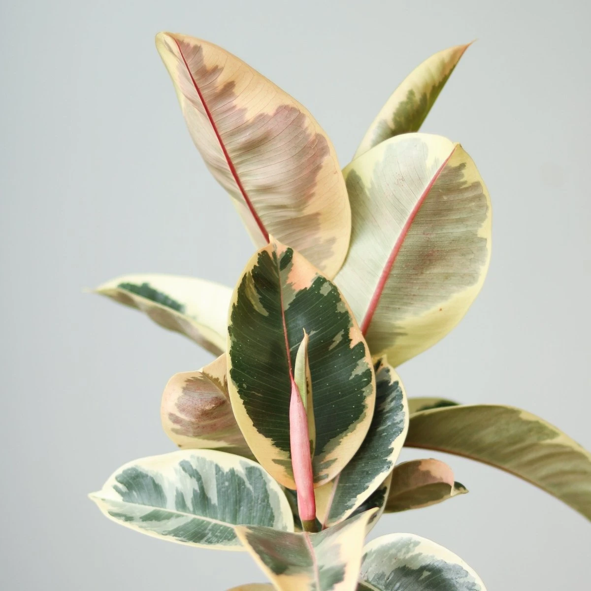 The Tineke Ficus (Ficus elastica ‘Tineke’) is one of the most striking houseplants you can add to your collection. Its bold, marbled leaves feature creamy white, soft green, and blush-pink tones—making it an instant centerpiece for any room. With a modern upright growth habit and easy-care nature, it’s equally loved by seasoned plant collectors and first-time plant parents.