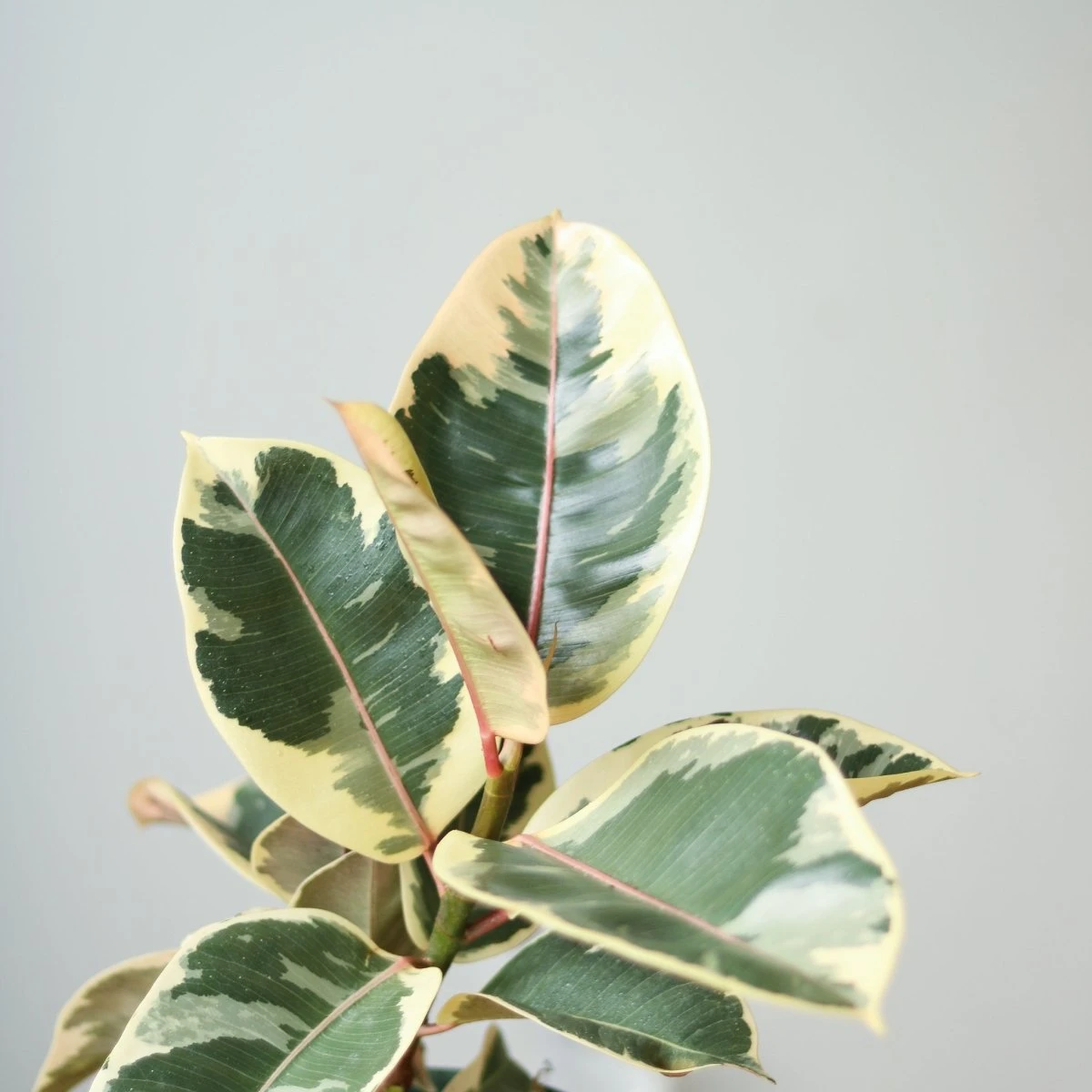- Common Names: Variegated Rubber Plant, Ficus Tineke