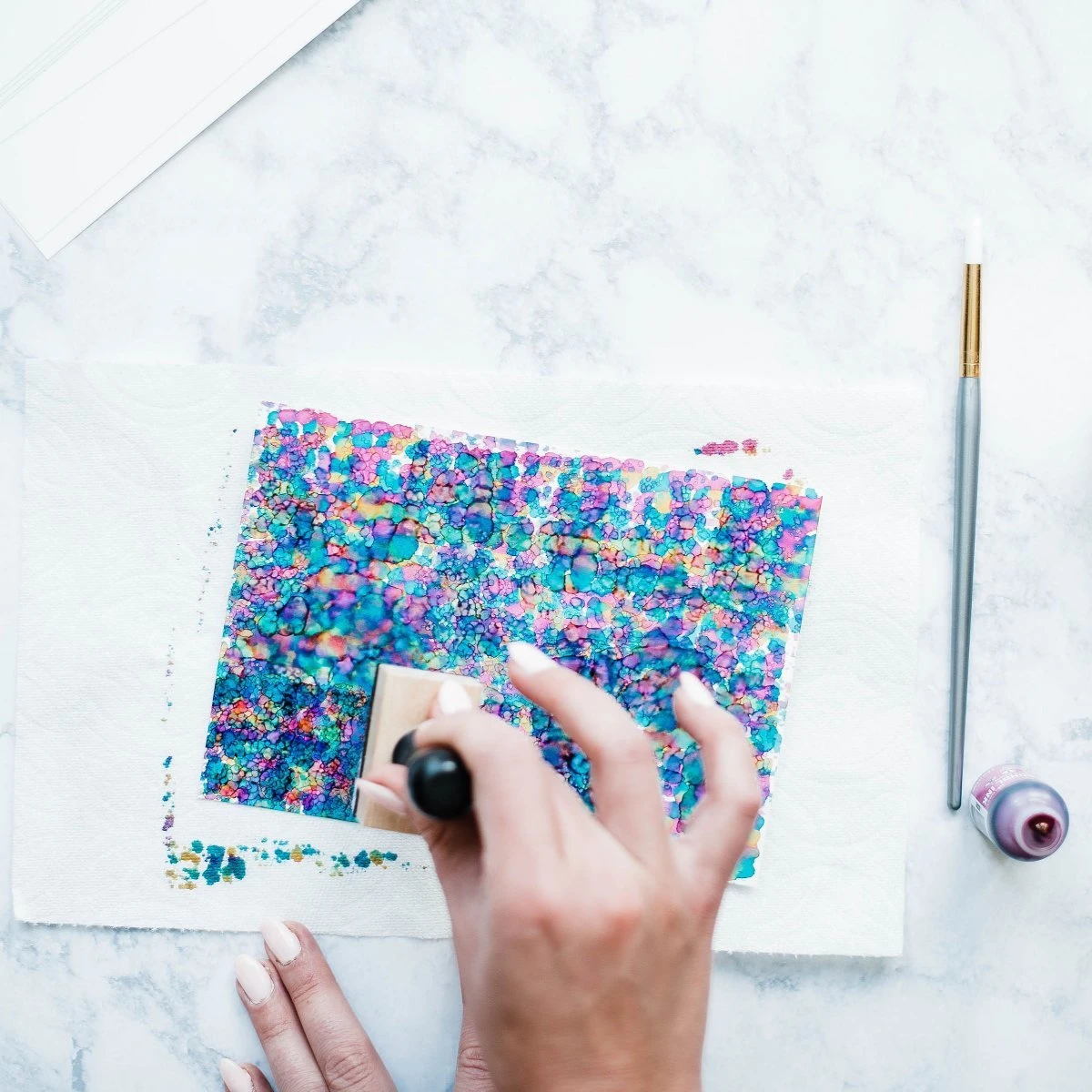 This project takes about an hour to complete. Alcohol inks are fast-drying, permanent dye inks specially formulated to produce vibrant and polished pieces. With plenty of yupo paper to share, this project is great to do with a friend!Â