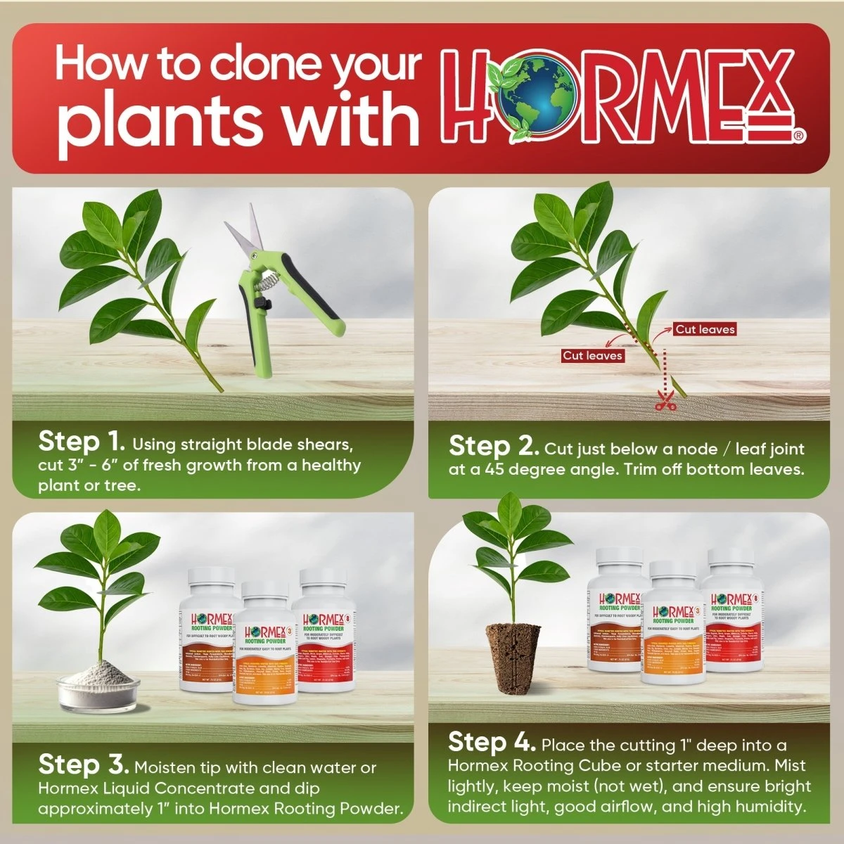 - Dip in clean water or Hormex Liquid Concentrate.