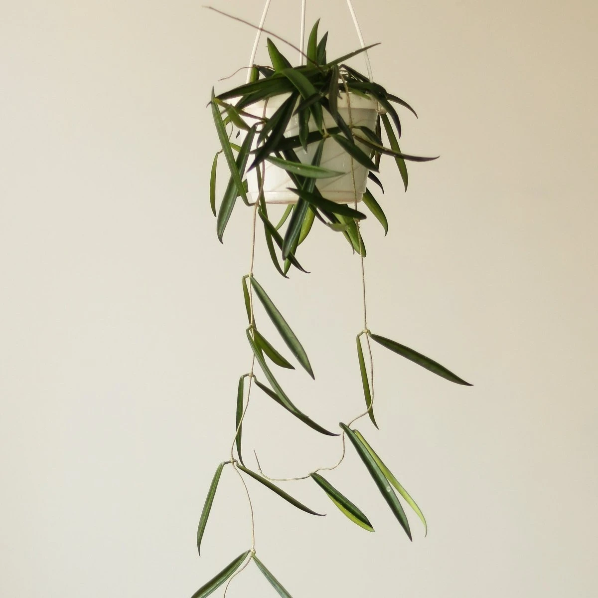 The Hoya Shepherdii or ‘String Bean’ Hoya is new to the shop, and one of the most interesting Hoya’s we’ve found so far. The leaves are much longer and skinnier than other varieties, hence the name, but the care requirements are the same. The ‘String Bean’ Hoya looks especially beautiful hanging in a window, and makes a great starter if you’ve never had a Hoya before.