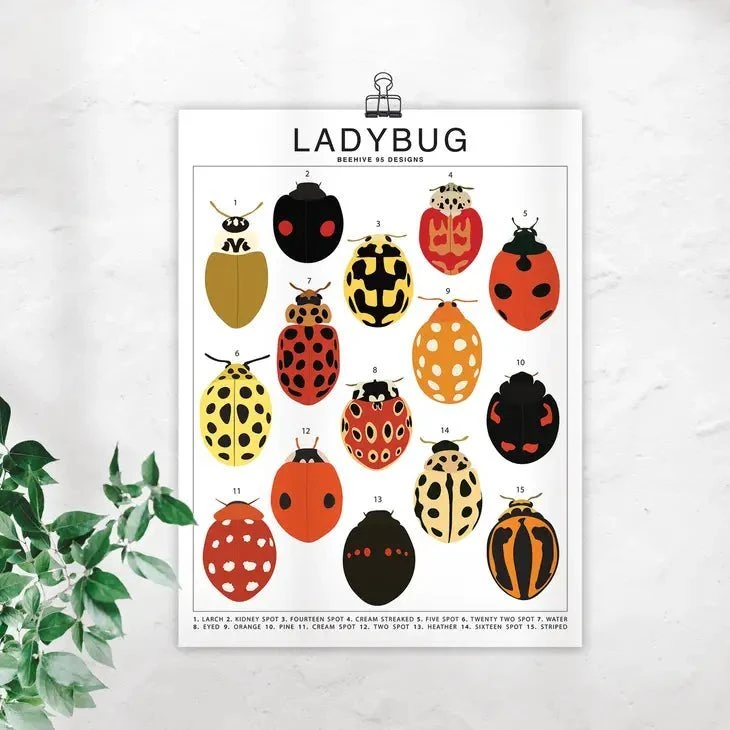 Our museum-quality art prints are perfect for any botanical lover or insect enthusiast! This insect art print features various species of Ladybug (Ladybird). All illustrations have unique designs and each species variety is numbered and identified at the bottom of the print.