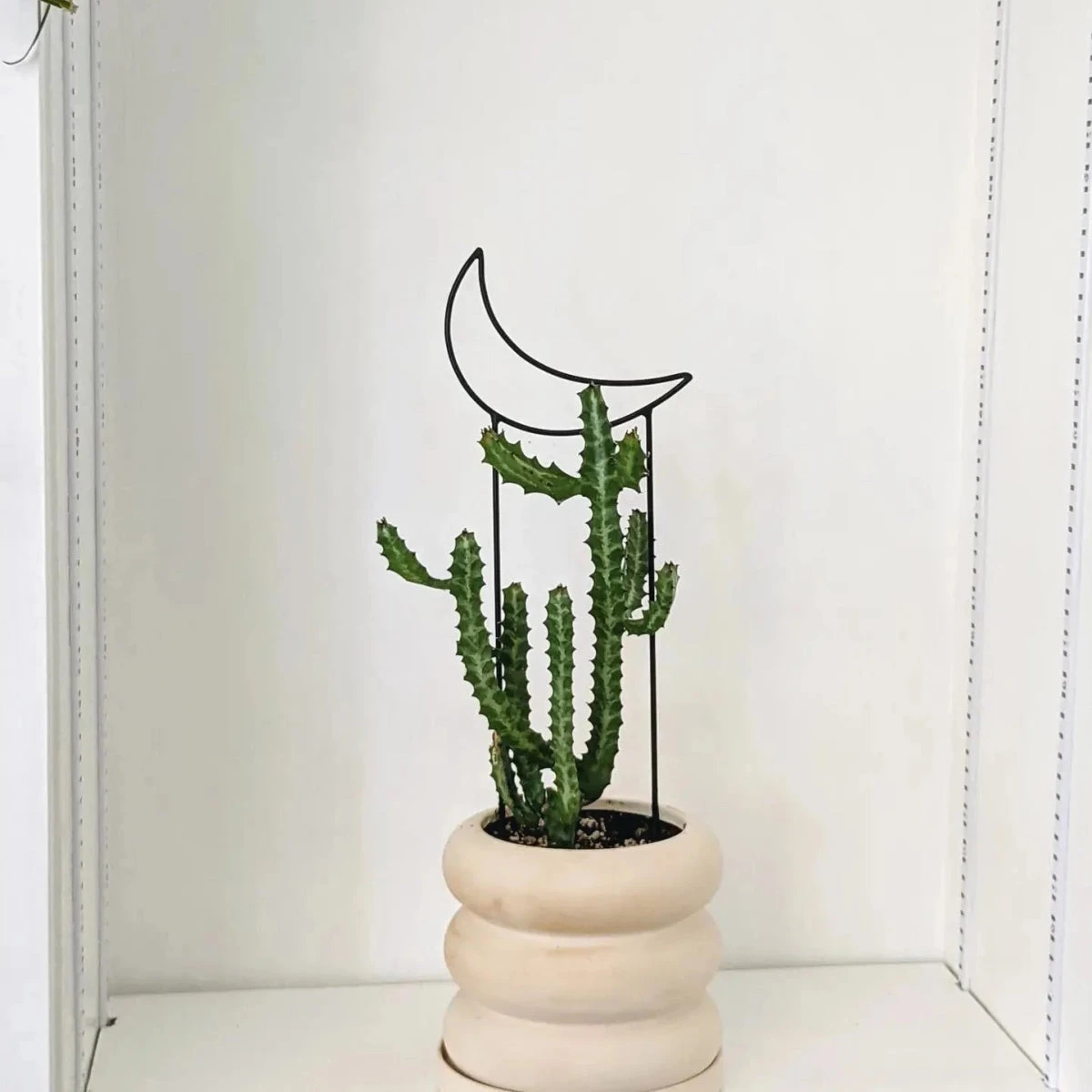 Introducing our Metal Crescent Moon Shaped Trellis. A versatile and stylish addition to your indoor and outdoor spaces. This unique trellis is perfect for your climbing & trailing plants providing a charming display for pots 4″ and larger. Crafted with precision from durable powder-coated metal, this crescent moon-shaped trellis is built to last. Its sturdy construction ensures stability for your plants, offering a reliable platform for showcasing your green companions. Made for Indoor & Outdoor use.