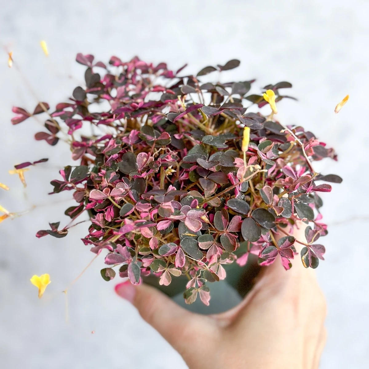 Bring a bold, colorful accent to your indoor or outdoor garden with Oxalis ‘Bi-Color’, a unique variety known for its deep burgundy leaves edged in vibrant pink. This rare and eye-catching plant produces delicate yellow flowers, creating a stunning contrast against its rich-toned foliage. Adding to its charm, the leaves exhibit nyctinasty, meaning they fold up at night and reopen with the morning sun—bringing movement and life to your plant collection.