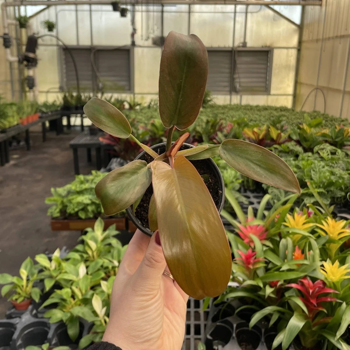 Philodendron ‘Sayaka’ combines dramatic coloration with a climbing habit—ideal for creating a living wall or adding height to mixed containers. Its rarity and striking gloss make it a standout conversation piece.