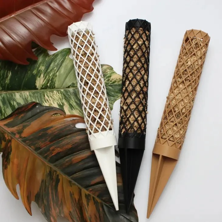 Plant Pole Set by Plvnt. The pieces connect to each other with a threaded screw for security and stability that you can depend on. Just fill with your medium of choice (sphagnum moss, Ed’s Spanish Moss, tree fern, leca, etc). You can buy additional plvnt pole sections to extend your pole as your plants grow and climb. For use with indoor plants only. Keep out of excessively hot areas and direct sunlight for long periods of time. Indirect sunlight is not an issue.