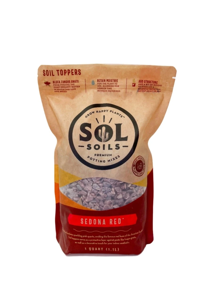The Sedona Red Soil Topper by Sol Soils features sparkling pink quartz inspired by the iconic red hues of the American Southwest. This decorative soil topper is the perfect way to enhance the look of your potted plants while providing practical benefits for their care.
