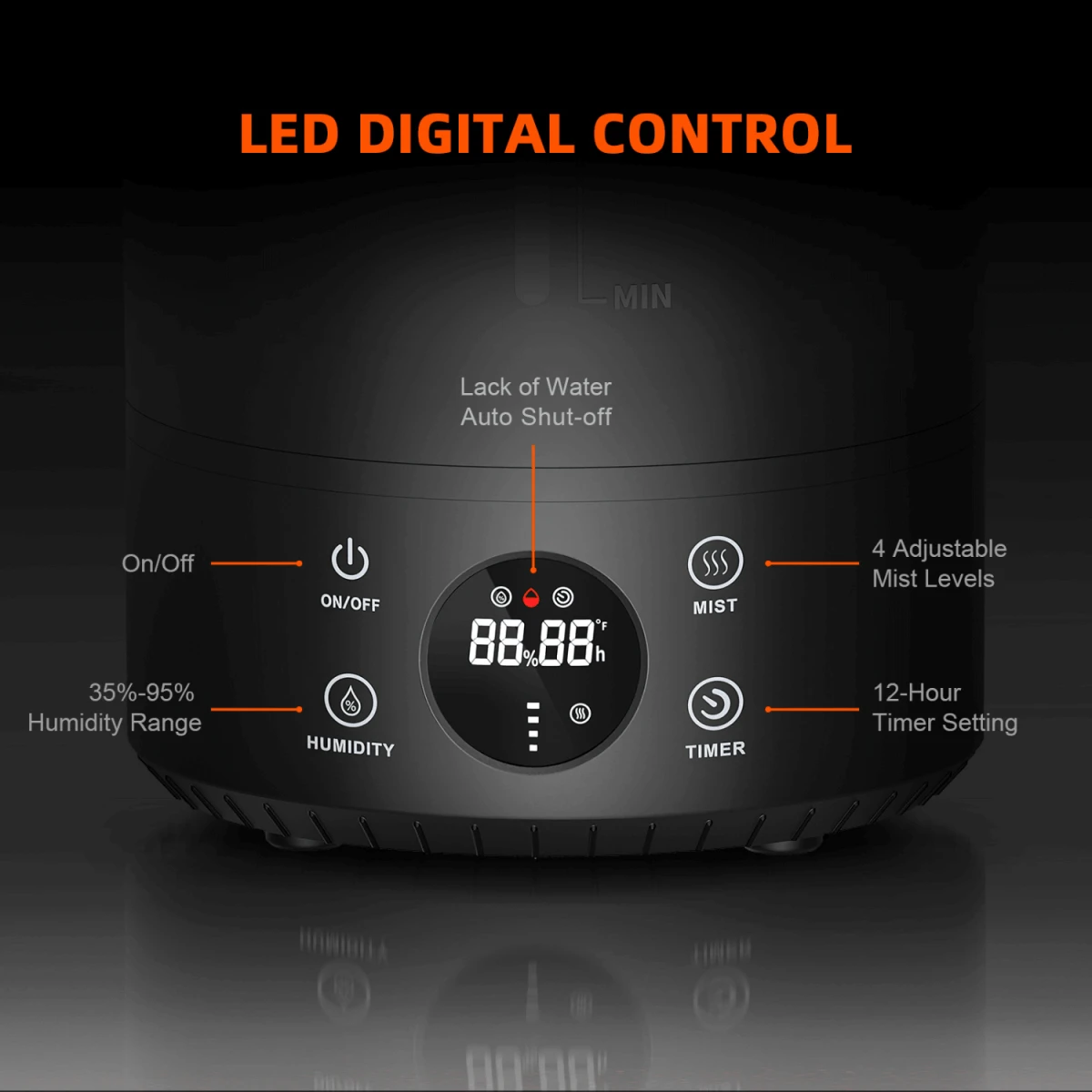 - Max Humidification: 450ML/H