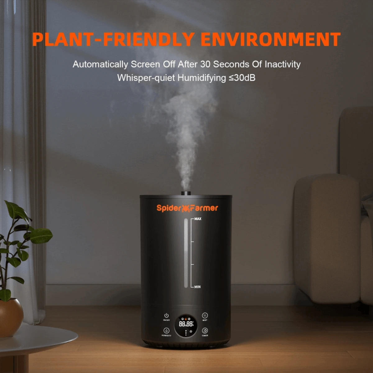 Low humidity can hinder plant growth and photosynthesis efficiency. The Spider Farmer Cool Mist Humidifier 6L is designed to maintain optimal moisture levels, ensuring a healthy and productive growing environment for your plants.