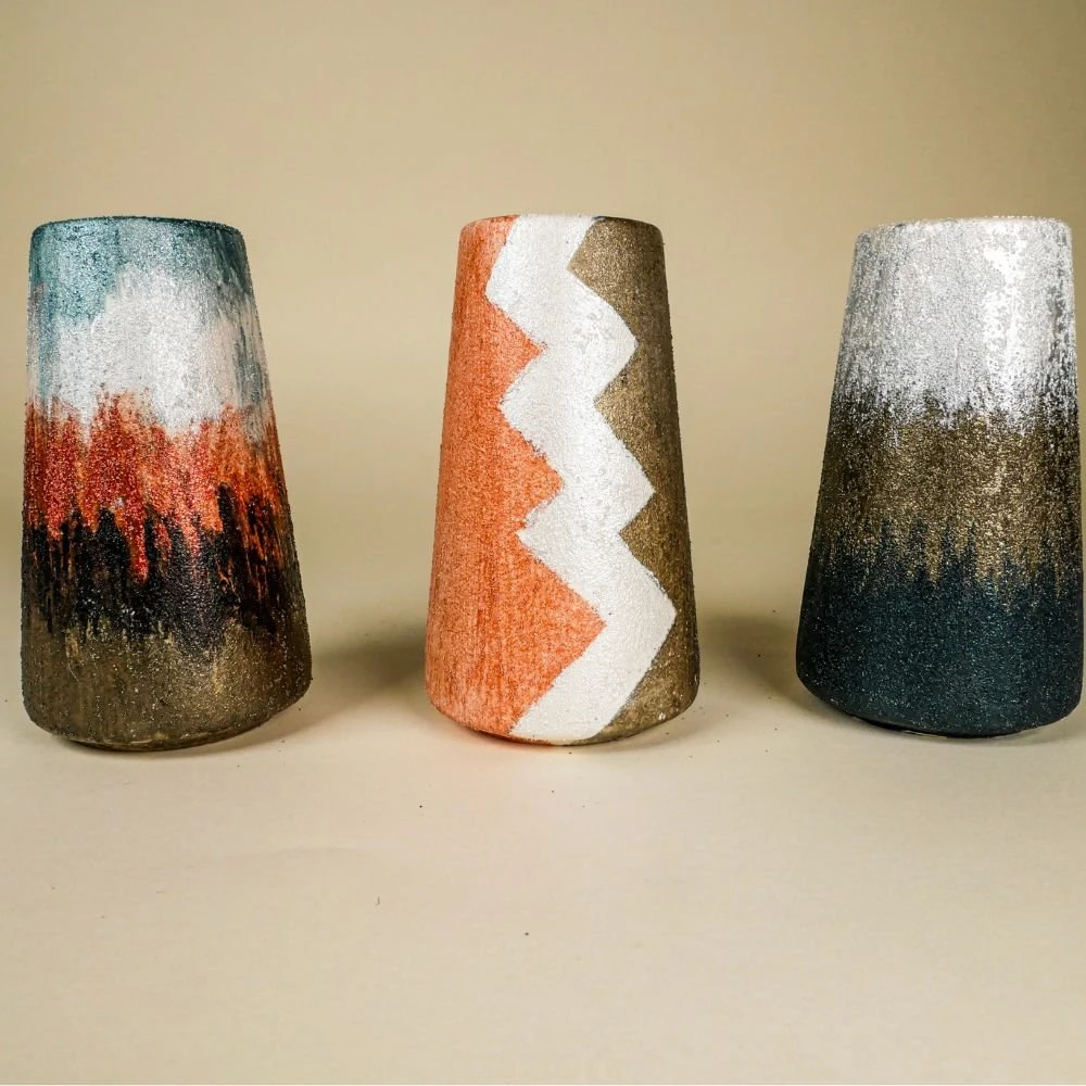 This project takes about an hour to complete. The paint requires about two hours to dry before it is displayed or used. The vases range between 4 inches and 7 inches tall. With multiple vases and paints included, this is a great project to do with a friend!