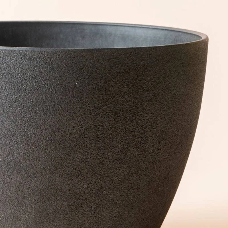 Tuileries Planter Pot. This attractive black planter pot is an ideal way to enjoy your favorite plants. They are sure to compliment any home decor. You will love them adorning outdoor areas such as your patio, deck, or garden or indoors in your kitchen, living room or bathroom. *Built to withstand intense sun and harsh winter temperatures, free from fade, frost, crack and peel damage so you can use it indoors and outdoors freely. A saucer is needed for indoor use (NOT INCLUDED). ** Drainage holes included.